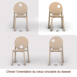 L’assise de la chaise Séléna est une subtile alliance de plein et de vide, de souplesse et de solidité. Le travail du chêne massif permet de mettre en forme l’assise et le dossier d’un seul tenant. Le mode de construction original de cette chaise, lui assure un confort et une stabilité parfaite.
