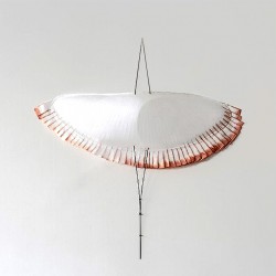 Les coques de papier sont maintenues sur un câble, tendu par le poids d'un galet. La guirlande est fixée au plafond par un crochet. Les abat-jours en papier japonais sont fabriqués à la main. L'alimentation se fait par le bas, le fil serpente ensuite jusqu'au dernier cocon.