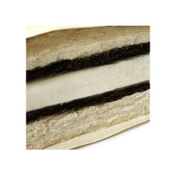 Futon au noyau en cocolatex, avec du latex collé sur chaque côté et bien isolé avec de la laine. Bien-être relaxant du futon et confort traditionnel du matelas ferme.