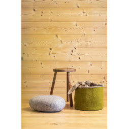 Sa fabrication est entièrement artisanale. A partir de laine de mouton cardée, d’eau et de savon, un long travail de pression et de friction permet aux fibres de laine de s’entrelacer pour obtenir une matière moelleuse, à la douceur généreuse. Sain pour l’environnement, le feutre est un excellent isolant thermique et phonique. C’est également une fibre naturelle anallergique ne favorisant pas la prolifération des bactéries ou des acariens, et ne dégageant aucune substance nuisible.