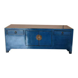 Meuble ancie en pin décapé et laissé brut et naturel. Très simple avec quatre tiroirs et une paire de porte au centre.