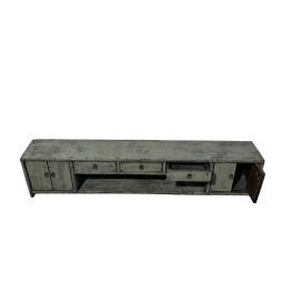 Meuble ancie en pin décapé et laissé brut et naturel. Très simple avec quatre tiroirs et une paire de porte au centre.