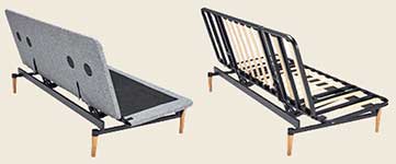 Choix de housses pour les matelas et futons de canapé-lit et de banquettes clic-clac. Utilisables d'un seul côté, la fermeture éclair est ainsi invisible et donne un aspect soigné au canapé. Le tissu d'ameublement est généralement composé de polyester et se nettoie à sec. Elles sont disponibles dans beaucoup de couleurs et depuis 2020, elles sont toujours livrées avec la housse de structure du dossier dans les dimensions 120 et 140 cm. Trois dimensions disponibles; 80, 120 et 140 x 200 cm.