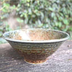 Bol a ramen en céramique de qualité, décor bord bleu et corps rouille moucheté. Le bol peut être utilisé pour toutes sortes de plats.