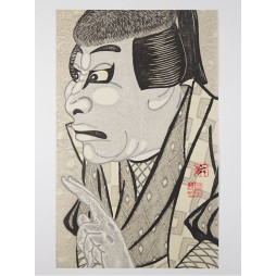 Kokei Tsuruya occupe une place unique parmi les artistes japonais contemporains de la gravure sur bois. Chargés d'émotion, audacieux et rendus de manière vivante, ses portraits de kabuki mélangent l'esprit de l'ukiyo-e avec un angle résolument moderne. Aux visages expressifs et aux gestes exagérés, les stars contemporaines de la scène kabuki jaillissent de l'imaginaire de l'artiste, audacieuses sur de délicates feuilles de papier ganpi. Alors que Kokei trouvait l'inspiration dans les gravures d'acteurs de la période Edo, il a également revigoré la relation symbiotique entre la gravure sur bois et le théâtre kabuki grâce à son partenariat de vingt-deux ans avec le Kabuki-za, le premier théâtre kabuki de Tokyo.