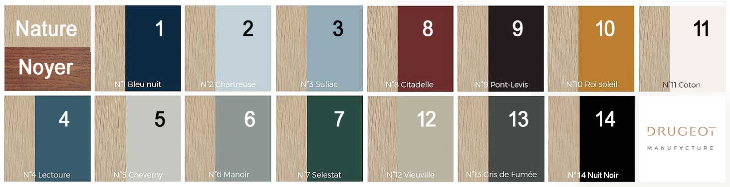 Le tiroir vide-poche est disponible dans un grand choix de couleurs et le meuble en teinté naturel ou noyer.