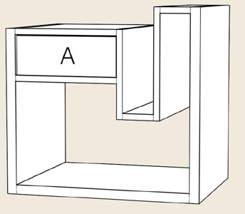 Un tiroir va-et-vient qui s'ouvre des deux côtés, un espace de rangement pour les magazines et un plateau, le petit meuble CRÉNEAU est utilisé aussi bien dans un salon que dans une chambre, en bout de canapé ou en chevet.