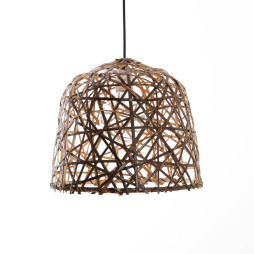 Elégante suspension dotée de deux abat-jour en bambou qui forment un seul abat-jour. Cette illusion originale donne à la lampe un aspect sophistiqué et charmant.