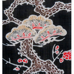 Noren en lin (100%) uni de couleur noire, tissé et teint verticalement à la main.