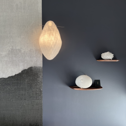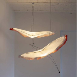 Un luminaire aux courbes naturelles évoquant une chrysalide.