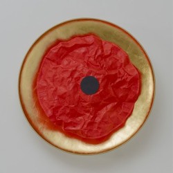 Une large coupole dorée reflète la lumière projetée d’un petit nuage de papier froissé en apesanteur sous le dôme.