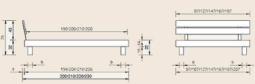 Cadre de base avec pieds carrés. Pour matelas traditionnel ou futon, sommier ou tatamis. Prix sans la barre médiane de renfort (CHF 60.- en plus, dès la largeur de 140 cm). Sommier lattes ECO A inclus dans le prix.