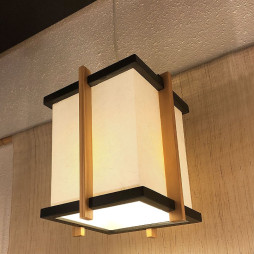 Bien typée, cette petite suspension en bois teinté naturel et noir, avec un abat-jour en imitation papier japonais est parfaite pour créer une atmosphère asiatique.