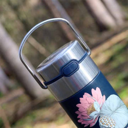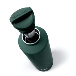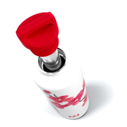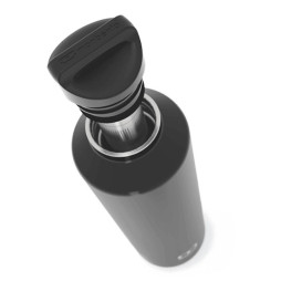 La bouteille est munie d'une anse large, très pratique; le couvercle s'ouvre d'une seule main en appuyant sur le bouton et elle est dotée d'un bec verseur pour servir ou boire. Le filtre (infuseur) en acier inox permet de préparer les boissons directement dans la bouteille, qui seront conservées froides ou chaudes.