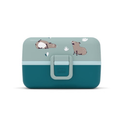 Avec sa forme compacte, le bento MB Tresor se glissera dans tous les sacs ou cartables. Son grand récipient inférieur est hermétique (une fois ses fermoirs verrouillés) et ses bords arrondis amortissent les chocs pour accompagner les petits gourmets nomades dans toutes leurs aventures !