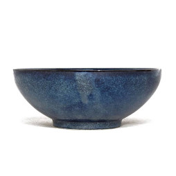 Bol à riz en porcelaine opaque émaillée bleu cobalt, avec des lignes en relief sur l'extérieur.