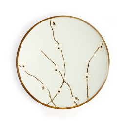 Grande assiette décorée de branches de cerisier en fleurs; en grès fin blanc de la région de Tokoname. Convient au four à micro-ondes et au lave-vaisselle.