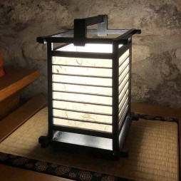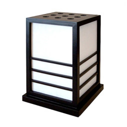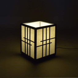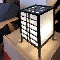 Structure solide en bois verni noir et papier translucide en matière synthétique.