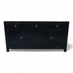 Sa structure traditionnelle et ses quatre portes dissimulent un espace de rangement généreux, idéal pour un salon ou une salle à manger. Chaque pièce présente des nuances uniques, renforçant son authenticité et son charme.