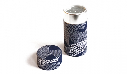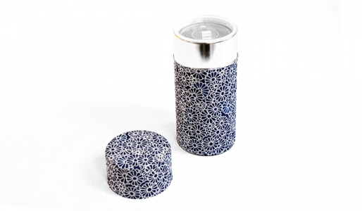 Grande boîte à thé japonaise décorée d’un motif Daruma rouge, idéale pour conserver le thé en vrac.