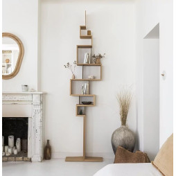 Bibliothèque graphique en chêne massif au design asymétrique, modulable et personnalisable, 100 cm de large.
