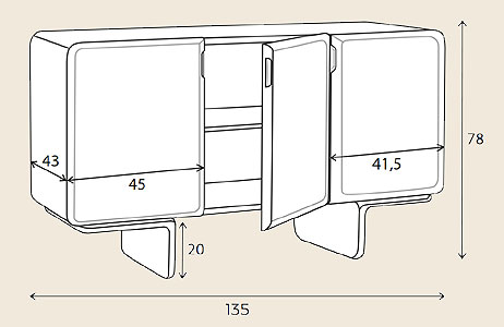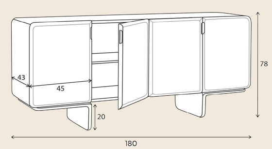 Le travail des ébénistes et la sensualité du chêne massif se révèlent dans les lignes arrondies et douces du buffet TÉHÈME: poignées sculptées dans le bois, charnières freinées, assemblages parfaitement ajustés, ponçage manuel des moulures. Livré avec deux tablettes amovibles.