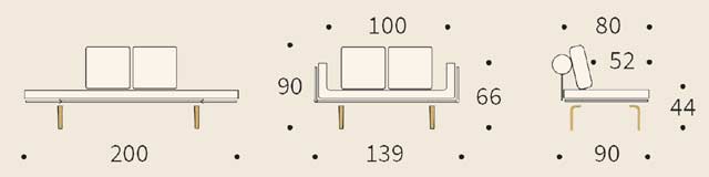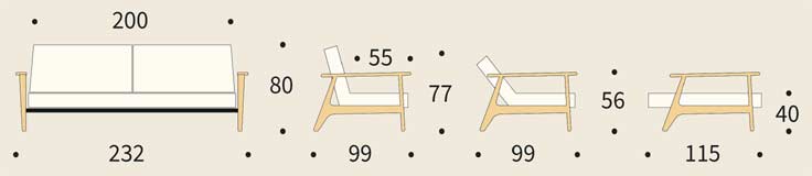 Aslak est un canapé-lit multifonctionnel et confortable, utilisable comme canapé trois places, pour une position droite et détendue, ou comme canapé-lit deux places avec quatre niveaux d'élévation de la tête.