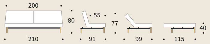 Un design classique peut devenir avant-gardiste et un design progressif peut être très pratique. Quarante-cinq couleurs à choisir dans la collection INNOVATION LIVING ! Facile à ouvrir et fermer. Lors de la transformation du siège, les pieds se déplient automatiquement et le canapé se transforme en lit. *voir la video*