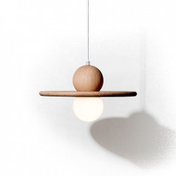 La suspension en bois Nébuleuse habillera de manière très élégante et sobre votre décoration d’intérieur. Cette lampe design convient à tous les styles d’intérieur avec sa forme arrondie. La suspension tendance, Nébuleuse, représente la légèreté alliée à la modernité, grâce à la symétrie parfaite entre ses deux sphères et son plateau. Son ombre évoque par ailleurs l’illusion d’un objet inconnu céleste, la nébuleuse planétaire. Elle apportera une touche d’imaginaire et de légèreté à votre pièce à vivre. Elle est entièrement en chêne, le disque est personnalisable, parmi notre gamme de 15 couleurs, la sphère toujours en chêne naturel.