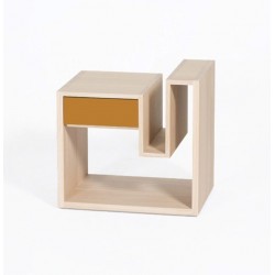 Un tiroir va-et-vient qui s'ouvre des deux côtés, un espace de rangement pour les magazines et un plateau, le petit meuble CRÉNEAU est utilisé aussi bien dans un salon que dans une chambre, en bout de canapé ou en chevet.