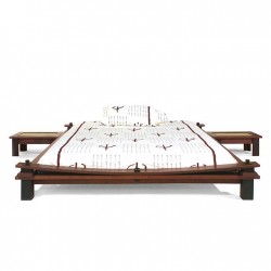 Sobriété et inspiration japonaise épurée. Pour tatamis ou sommiers roulables ou traditionnels. Dimensions extérieures: + 16 cm Haut.: 18 cm. Design exclusif Makoura