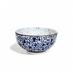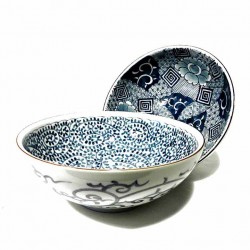 Magnifique bol classique "made in Japan" avec sa bordure aux couleurs de l’océan, sur un fond émaillé noir.
