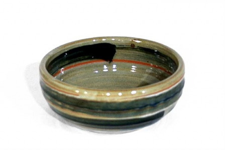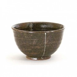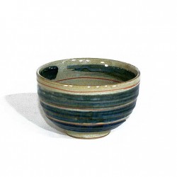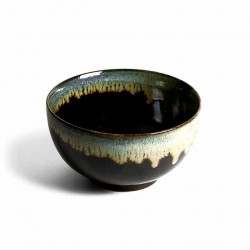 ENSUI, est un bol japonais en porcelaine émaillée, décoré d'un émail bleu-vert mat original, moucheté de taches brunes.