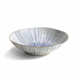 La grande coupe évasée Hokusai est en porcelaine blanche et bleu décorée de la Vague de Hokusai. Au Japon elle est traditionnellement utilisée pour les nouilles ou les ramen, mais peut aussi servir de coupe à fruits ou de plat de présentation.