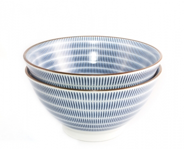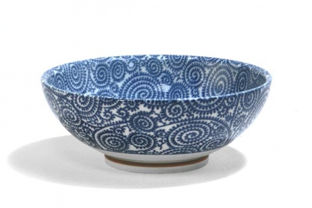Bol à ramen ou à nouilles, en porcelaine blanche, orné de vagues bleues. Lavable en machine et passe au four micro-onde