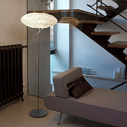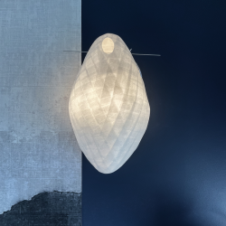Un luminaire aux courbes naturelles évoquant une chrysalide.