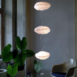 Entièrement réalisée à la main, la suspension CUMULUS est équipée d’un système monte et baisse, lesté par un galet de marbre blanc. Il est possible de de demander ce luminaire sans galet et même complètement fermés (envoyer un mail à : makoura@bluewin.ch).