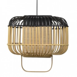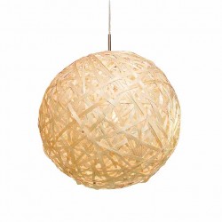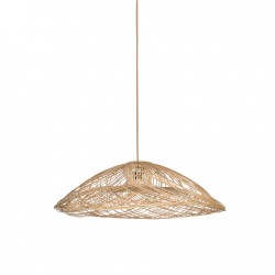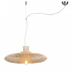Cette suspension de forme circulaire mais plate, est manufacturée avec de la fibre de bambou naturelle, selon une technique japonaise, genre origami.