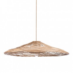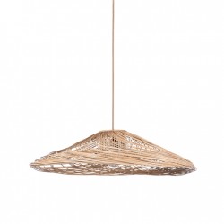La suspension Kalahari de Mojo est équipée d'un fil d'alimentation électrique et d'un câble pouvant déporté l'abat-jour en rotin de couleur naturelle. L'ampoule n'est pas comprise.