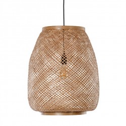 Très grande suspension exotique en bambou, dessinée avec caractère.