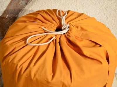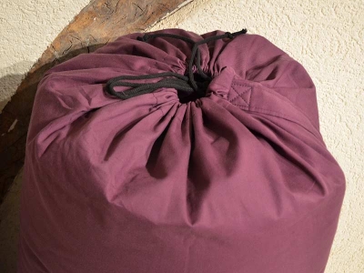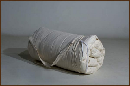 Ces futons sont composé uniquement de coton recyclé en couches cardées. Ils sont roulés dans un sac écru ou de couleur. Sa grande dimension est confortable pour dormir ou pour pratiquer le yoga ou des massages au sol. Piquage manuel sans feutrines ou boutons.