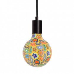 Ampoule LED décorée d'une pâte de porcelaine appliquée à la main, selon une technique japonaise. Décorative et "dimmable", elle donne une lumière adoucie, le verre étant coloré de motifs fleuris.