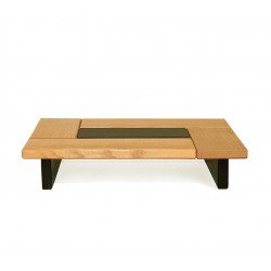 Chevet en hêtre massif abouté, avec un plateau en verre, qui protège le jardin zen de sable fin.