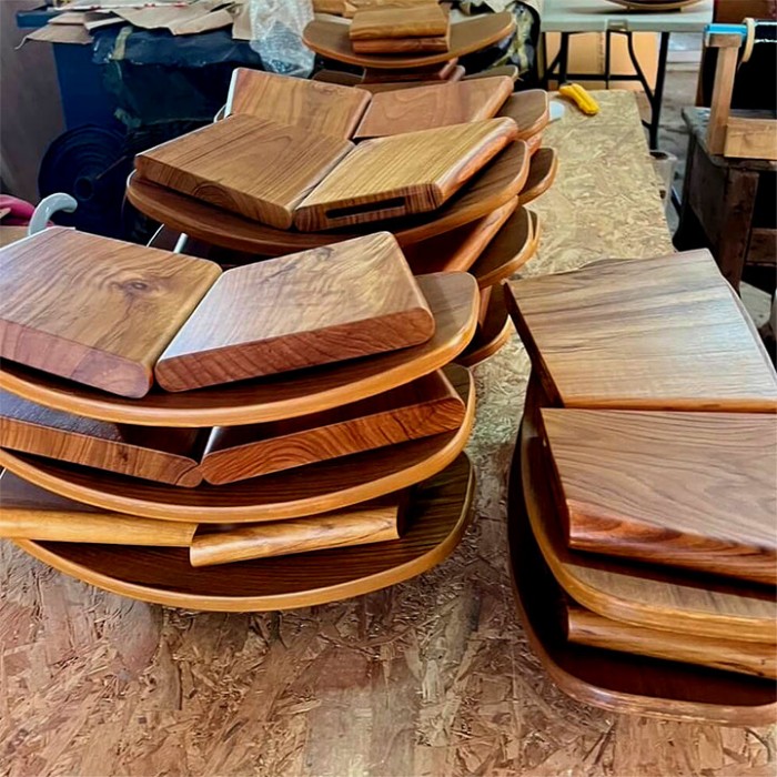 Chaque banc est une pièce unique faite à la main. Les pieds maintiennent le banc fermement en place sans aucune charnière métallique gênante et sont facilement amovibles. Le système d’insertion des pieds dans le banc le rend stable et ne produit aucun bruit.
