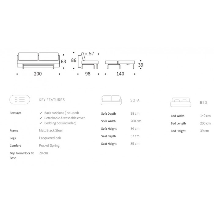 Les canapés Conlix sont pourvues de housses lavables, amovibles, et faciles et simples à nettoyer et à remettre en place grâce à une conception de fermeture à glissière unique. Conlix élimine les soucis liés aux maladresses, à la proximité de petits enfants et de meubles en tissus; cela prolonge évidemment la durabilité du canapé. Le canapé est facilement transformable en lit de 140 x 200 cm. On glisse le siège, on abaisse le dossier et on a un lit double. Un lit d'appoint reposant et très confortable pour deux personnes.