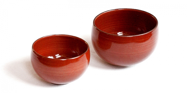Grand bol rond en grès fin émaillé rouge.