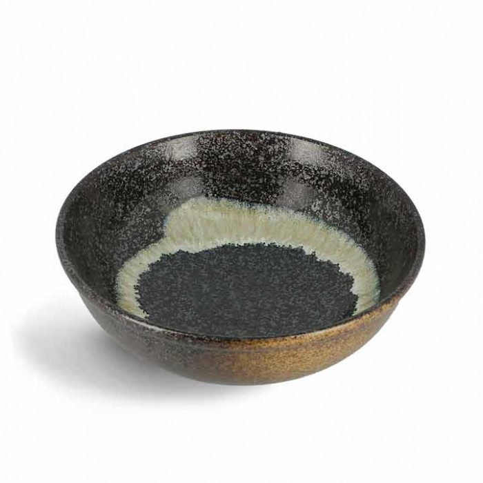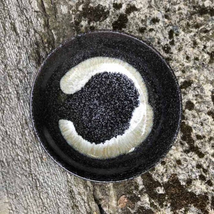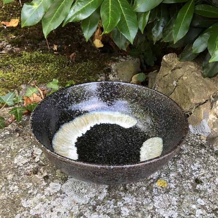 Grand bol en grès avec un décor émaillé mat sur un fond de sable noir.