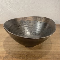 HITAISHO, est un bol japonais en fine porcelaine opaque, décoré d'un émail original, de noir, de gris et d'argent cuivré.