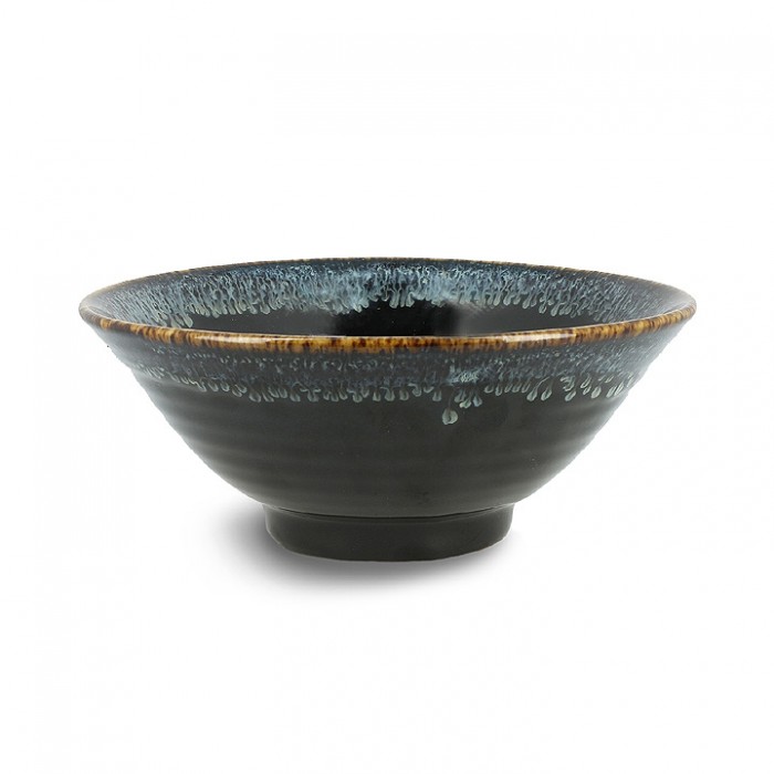 Magnifique bol classique "made in Japan" avec sa bordure aux couleurs de l’océan, sur un fond émaillé noir.