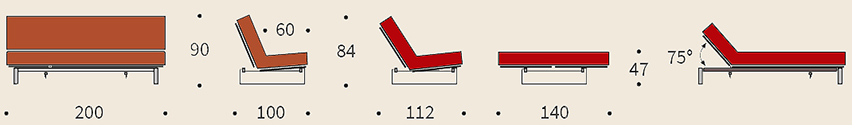 Vingt couleurs sont proposées ci-dessus, mais il y a encore plus de couleurs, toutes disponibles en 4 à 8 semaines. Les deux positions pour l'assise et les quatre positions de la tête en version lit font de ce modèle le top des transformables ! Attention, les images des banquettes ne correspondent pas forcément aux carrés des couleurs proposées. Nous conseillons toujours de venir dans un de nos points de vente pour voir la collection de tissu et sa couleur exacte.